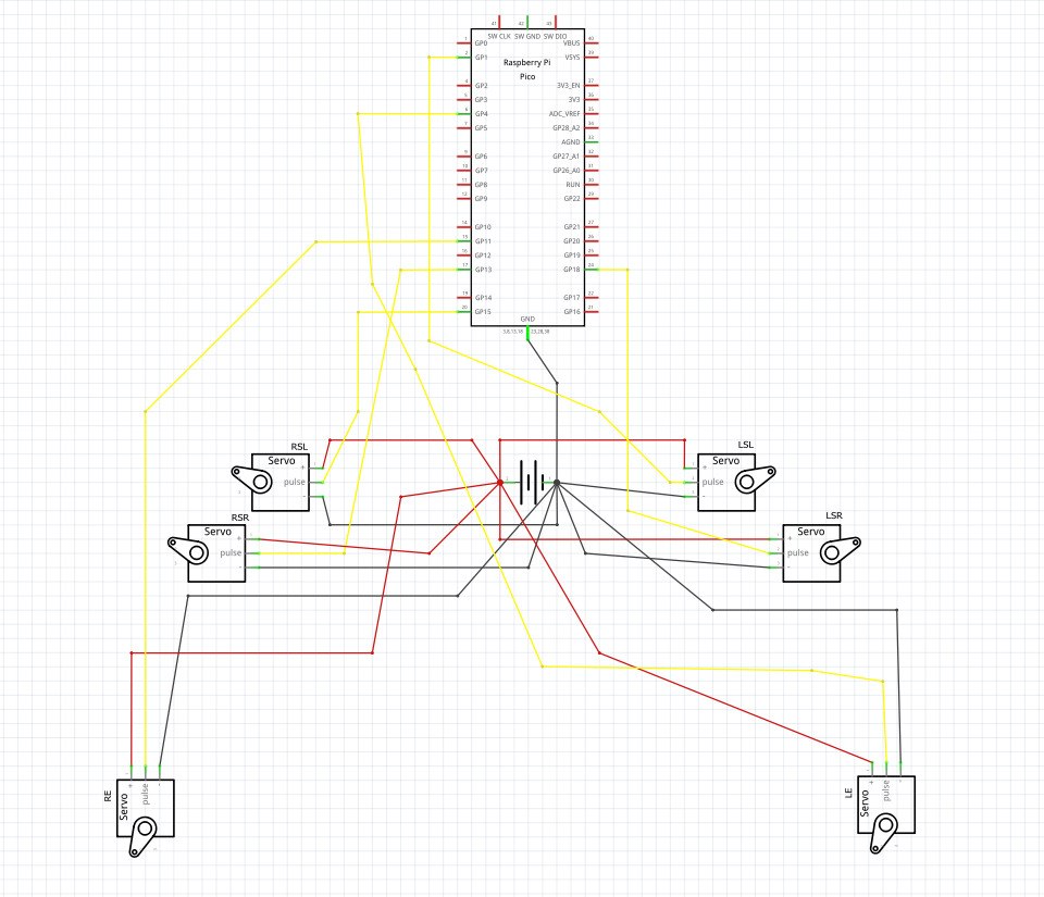 Na obrazku je zobrazena schema ktora ukazuje pripojenie medzi Pi Picom a servomotormi